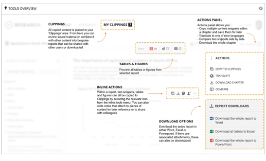 Our database of hundreds of reports allows you to search keywords across 100,000+ pages of research, easily export data tables to Excel, and quickly create custom clippings for internal presentations.