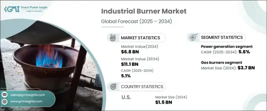 2024 年全球工業燃燒器市場價值為 68 億美元,預計 2025 年至 2034 年期間的複合年成長率為 5.1%。更嚴格的環境法規和對最佳化工業流程的關注進一步促進了市場擴張。工業燃燒器在製造業、發電業和化工等各行業的能源生產和加熱應用中發揮著至關重要的作用。隨著永續性越來越受到重視,企業開始轉向能夠提高燃料效率、減少能源浪費和降低營運成本的燃燒器。自動化系統、智慧控制等現代技術的整合提高了熱效率和燃燒精度,使這些解決方案成為現代工業不可或缺的一部分。