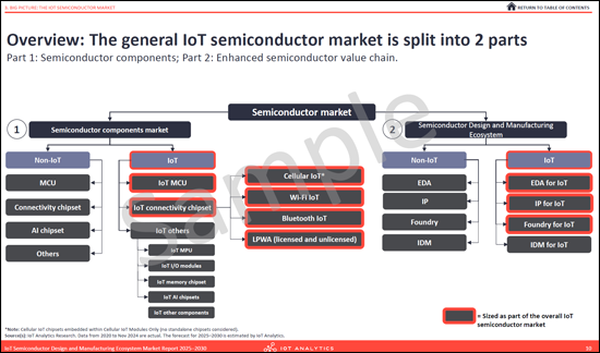• Overview: The general IoT semiconductor market is split into 2 parts