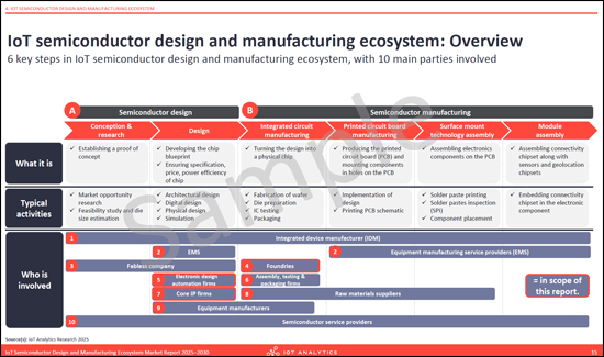 全球物聯網設備的安裝數量持續成長,每個設備內部的半導體密度也隨之提高。這項需求成長是由複雜的物聯網半導體價值鏈驅動的,負責底層晶片的設計和製造。