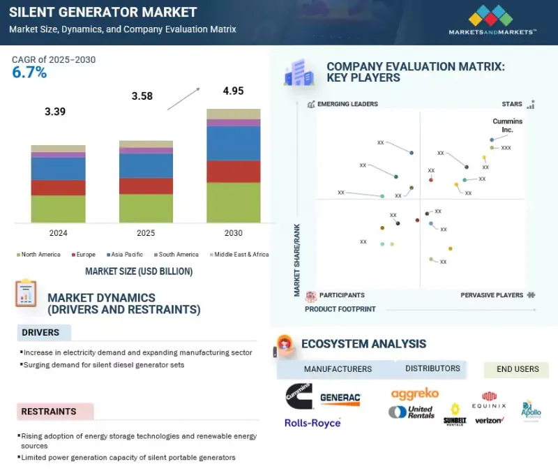 靜音發電機市場預計將從 2025 年的 35.8 億美元成長到 2030 年的 49.5 億美元,複合年成長率為 6.7%。