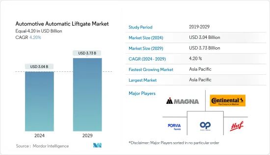 汽車自動升降車門:市場佔有率分析、產業趨勢與統計、成長預測(2024-2029)Automotive Automatic Liftgate - Market Share Analysis, Industry Trends & Statistics, Growth Forecasts (2024 - 2029) |