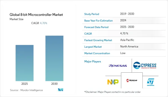 The Global 8-bit Microcontroller Market is expected to register a CAGR of 4.7% during the forecast period.
