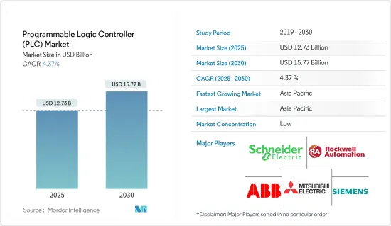 The Programmable Logic Controller Market size is estimated at USD 12.73 billion in 2025, and is expected to reach USD 15.77 billion by 2030, at a CAGR of 4.37% during the forecast period (2025-2030).
