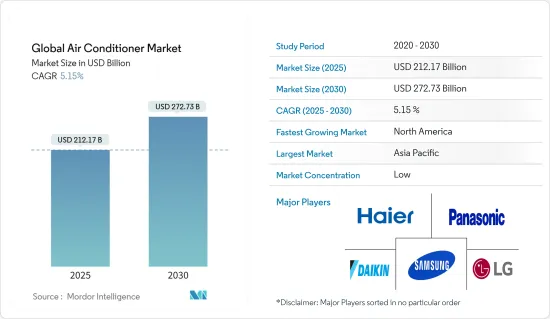空調市場:全球市場佔有率分析、產業趨勢與統計、成長預測(2025-2030 年)Global Air Conditioner - Market Share Analysis, Industry Trends & Statistics, Growth Forecasts (2025 - 2030) |
