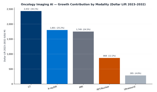 Across MRI (prostate/liver), CT (lung pathways), and PET/Nuclear (theranostics), growth increasingly concentrates in quantification, analytics, and structured reporting-tools that make cancer imaging more reproducible and operationally scalable.