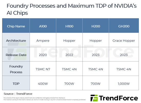• Table 1: Foundry Processes and Maximum TDP of NVIDIA's AI Chips