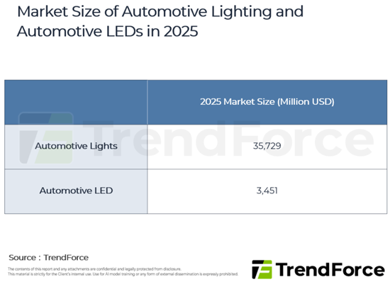 由於持續的宏觀經濟不確定性,預計2025年全球汽車照明和顯示應用LED市場將面臨巨大的價格壓力。然而,對汽車LED供應商訂單量的分析表明,汽車產量可能在2025年下半年復甦。在2026年車型持續採用先進技術的推動下,預計汽車LED和汽車照明市場規模將分別達到34.51億美元和357.29億美元。