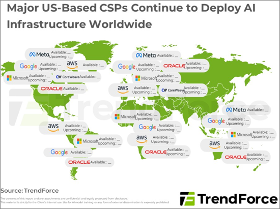 • Major US-Based CSPs Continue to Deploy AI Infrastructure Worldwide, Aiming to Gain a Competitive Edge in Computing Power