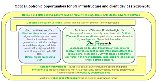 6. Optical Signal Processing OSP, photovoltaics including as multifunctional 6G infrastructure and client devices, Far IR THz waveguides and cable, fiber optics, optronic sensors